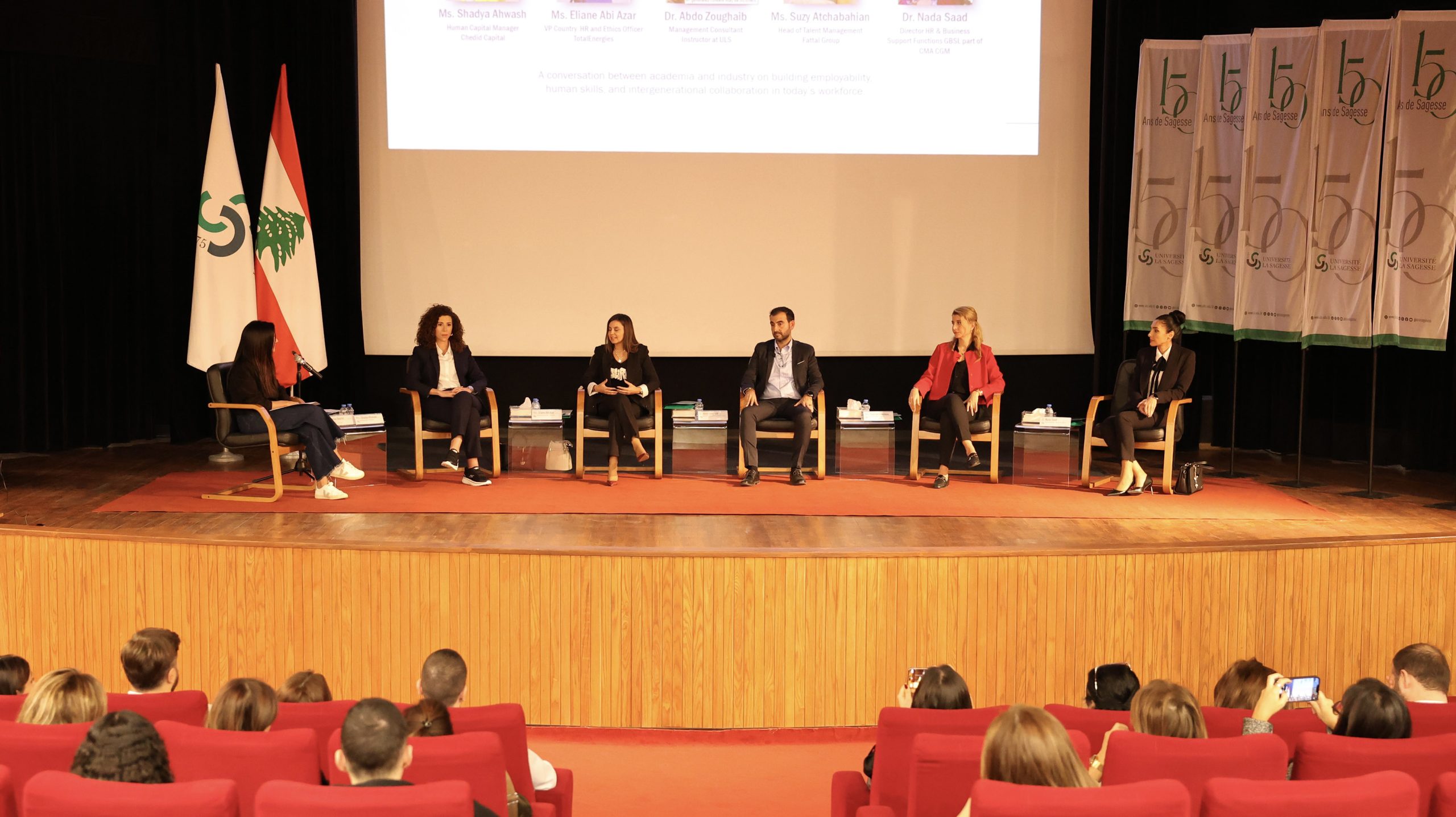 An academic event by the Faculty of Economics and Business Administration marking the 150th Anniversary of Université La Sagesse exploring how El and Al shape sustainable leadership.