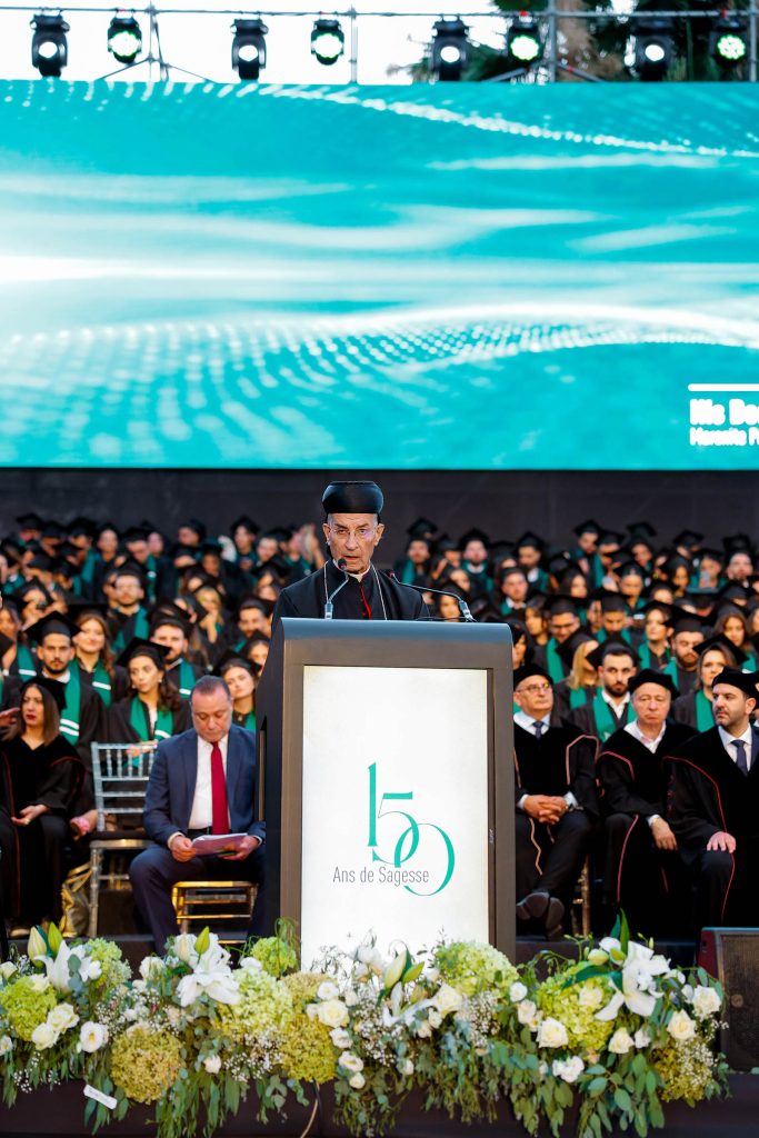 وختم البطريرك كلمته بالصلاة من أجل جامعة الحكمة في يوبيلها المئة والخمسين لكي تبقى منارة الإشعاع وعلامة رجاء وجسرًا بين العلم والإيمان.