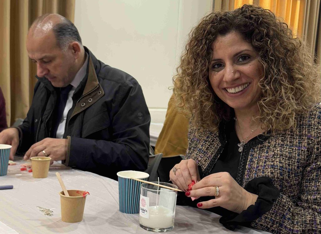 Participants got the chance to create their own personalized scented candles, with festive designs.