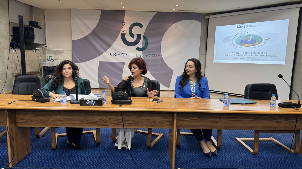 La conférence a été marquée par la présence inspirante de Dr Myrna Abi Abdallah Doumit, une référence incontournable du leadership infirmier au Liban et à l’échelle internationale. Ancienne présidente de l’Ordre des infirmiers et infirmières du Liban, elle a dirigé la profession durant des périodes de crise majeures, notamment la pandémie de COVID-19, l’explosion du port de Beyrouth et la crise économique. Son engagement en faveur de la santé mondiale a été salué par de nombreuses distinctions, dont le Prix de reconnaissance des agents de santé de l’OMS pour le leadership (2021) et l’Ordre du Mérite libanais (2022). Elle a aussi reçu le titre de « Heroine of Health » (2021), une distinction décernée par le Conseil international des infirmières et Women in Global Health. Dr Doumit est actuellement élue représentante actuelle de la région MENA au sein du Conseil international des infirmières (ICN).