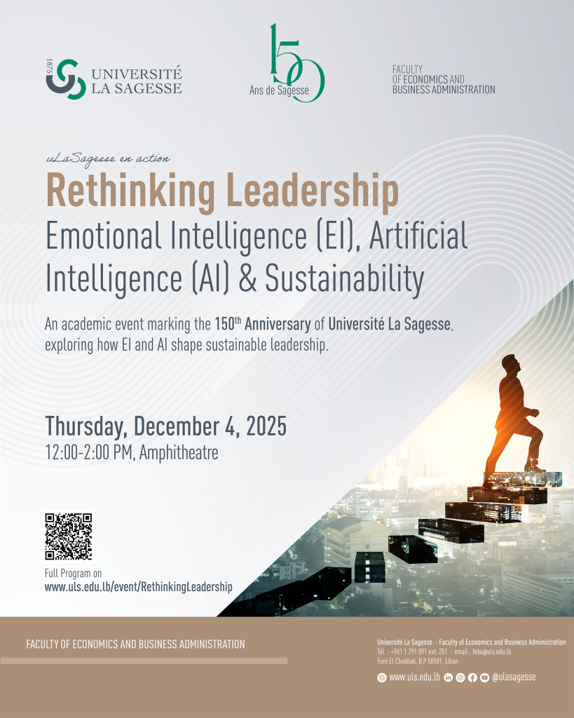 « All Events This event has passed. Rethinking Leadership November 20 - 12:00 « Commémoration de la Fête de l’Indépendance à l’Université La Sagesse Student Elections Day at Université La Sagesse » Add to calendar Google Calendar iCalendar Outlook 365 Outlook Live Details Date: November 20 Time: 12:00 - 14:00 Event Categories: Upcoming Event, Faculty of Economics and Business Administration Organizer Faculty of Economics and Business Administration Venue Université La Sagesse – Main Campus Furn El Chebbak Lebanon + Google Map View Venue Website
