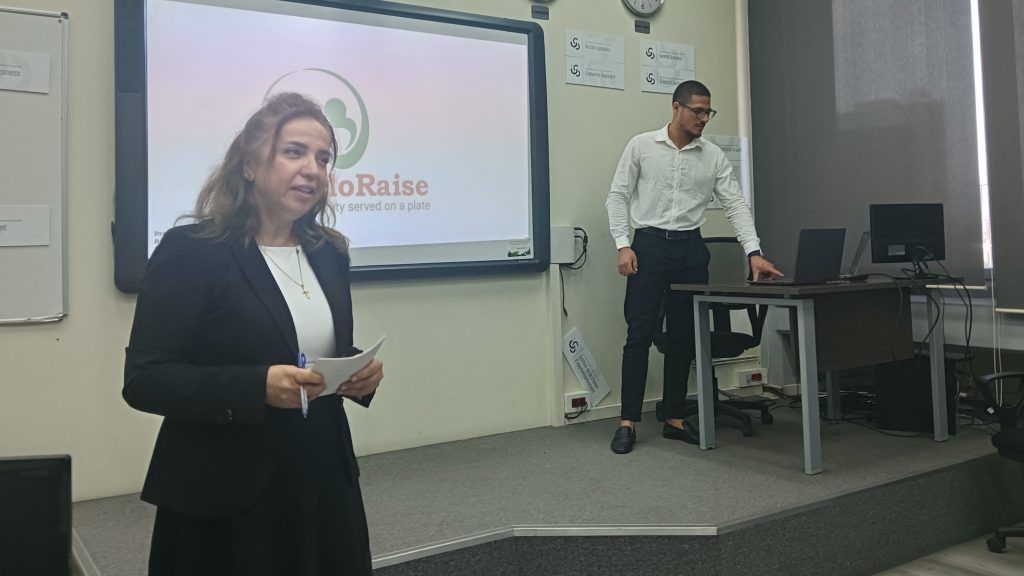 Ill Bou Samra and Rania Al Adel, inspired by Rania’s personal experience, proposed SoloRaise, a restaurant and job platform designed to support single mothers. The project impressed the jury with its strong social relevance and potential for real-world impact. Suggestions were made to structure the initiative as a SARL (limited liability company) and to strengthen its transparency, pricing, and recruitment strategies. Additionally, Dr. Sandreen Hitti encouraged the team to explore partnerships with organizations such as the LLWB NGO to enhance the project’s reach and effectiveness.