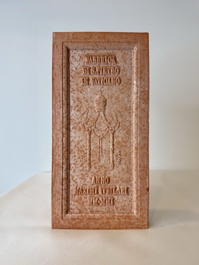 Une brique historique, scellée dans la Porte Sainte de la Basilique Papale Saint-Pierre au Vatican à la clôture du Grand Jubilé de l’An 2000 proclamé par Saint Jean-Paul II, et extraite lors de la réouverture de cette même Porte par le Saint-Père François, au début de l’Année Sainte Extraordinaire de la Miséricorde (2015-2016), provenante des archives du Collège Maronite à Rome, spécialement dédiée à l’Université afin d’être remise au Chef de l’État.