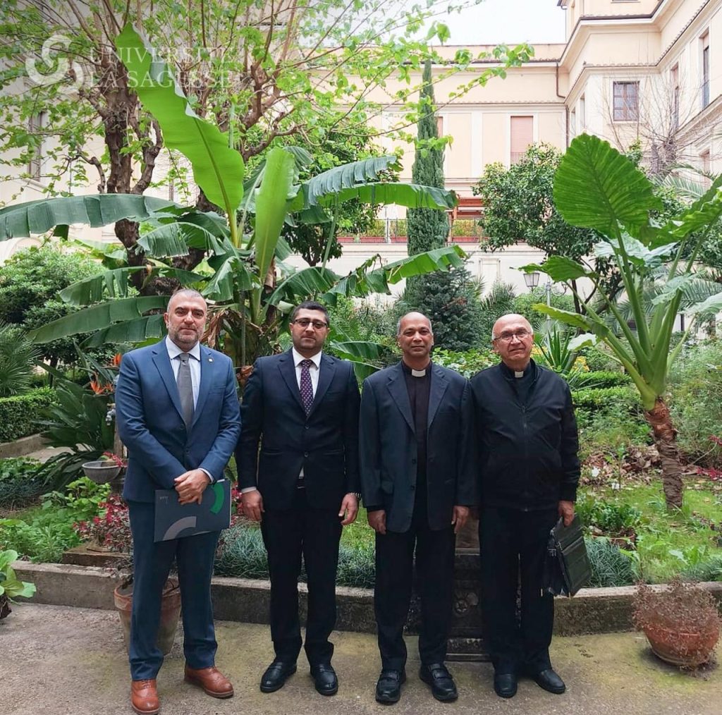 Une délégation de l’Université La Sagesse, presidée par le Recteur, Pr. Georges Nehmé, accompagné du Vice-recteur aux affaires académiques, Dr. Rayan Haykal, et du Doyen de la Faculté de Droit Canonique, Mgr Nabih Mouawad, a rencontré des autorités académiques ecclésiastiques à Rome et au Vatican pour renforcer les liens de collaboration. La délégation a échangé avec deux officiels au Dicastère pour la culture et l’éducation, Mgr Roberth Alexander Hernández Gómez (responsable de la section enseignement supérieur au Dicastère) et Mgr François Nitiema (responsable de l’éducation en langue française) ainsi qu’avec P. Sunny Kokkaravalayil, S.J., Président de l’Institut Pontifical Oriental (PIO). La délégation a également rencontré Mgr Philippe Bordeyne, Président de l’Institut Pontifical Jean-Paul II de l’Université Pontificale du Latran.