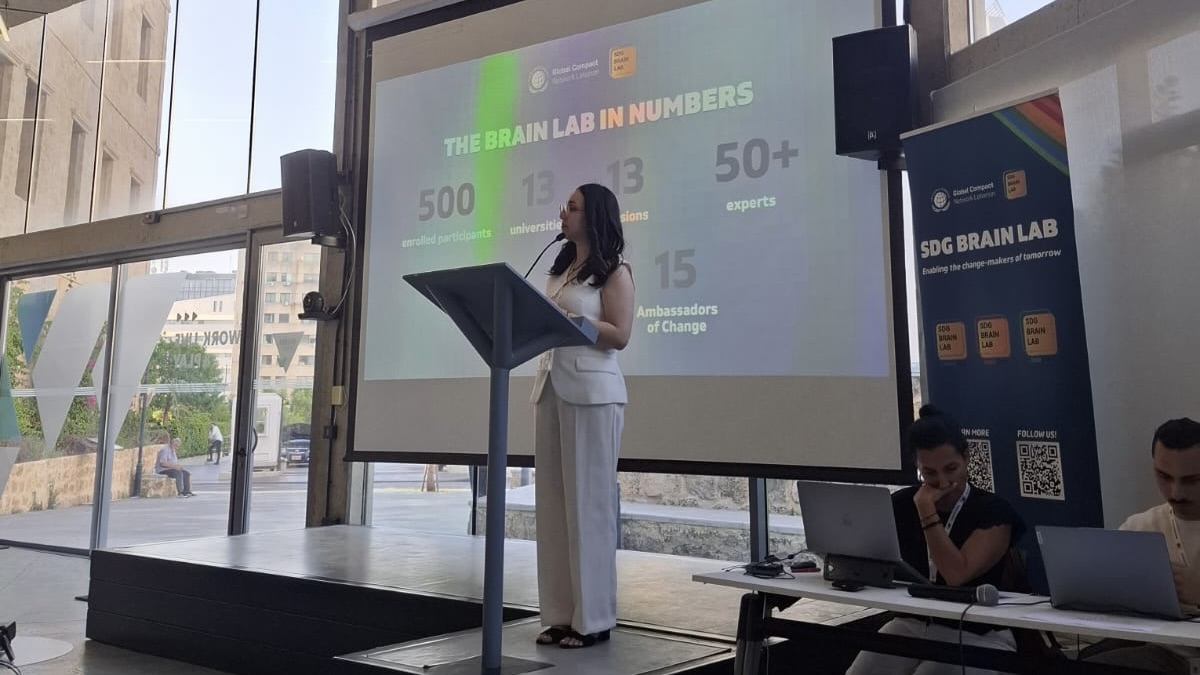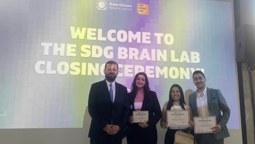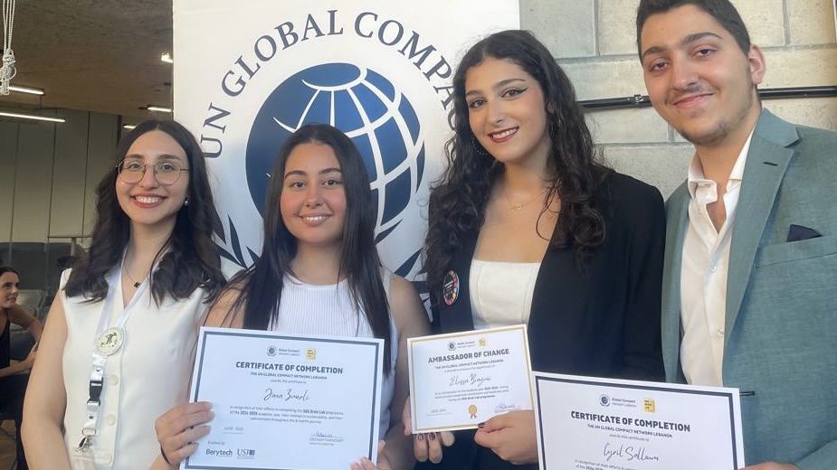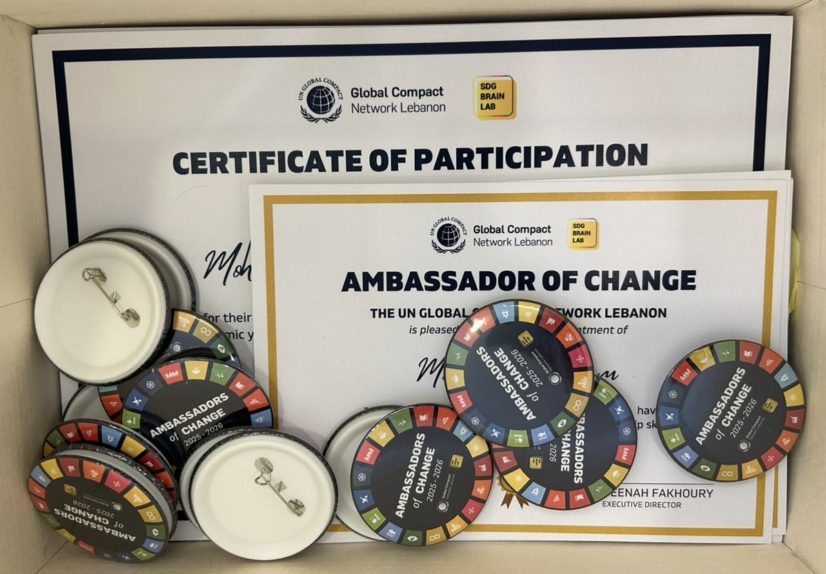 Over several months of online training, five students from the Faculty of Political Science and International Relations, Cyril Salloum, Elissa Biagini, Jana Izmerli, Mahmoud Hammoud, and Georges Daou, explored each of the 17 Sustainable Development Goals, not as abstract ideals, but as urgent calls to action, especially in Lebanon.